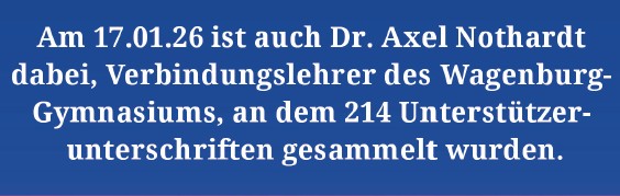 Noch kurz vor Weihnachten erhielten wir ein Schreiben von Dr. Axel Nothardt, Verbindungslehrer des Wagenburg-Gymnasiums, der mit seinen Schüler:innen 214 Unterschriften für unsere Unterschriftenaktion „Ehrenbürgerschaft für Fritz Bauer – auch als Vorkämpfer gegen das §175-Unrecht“ gesammelt hat. Er hat sich auch bereit erklärt, bei unserer Film- und Diskussions-Veranstaltung am 17. Januar 2026 „Wie das demokratische Vorbild Fritz Bauer bekannter machen?“ in der Weissenburg (Weißenburgstraße 28a in Stuttgart) dabei zu sein. Das hat uns sehr gefreut und veranlasst, folgendes Kurzinterview mit ihm zu führen: