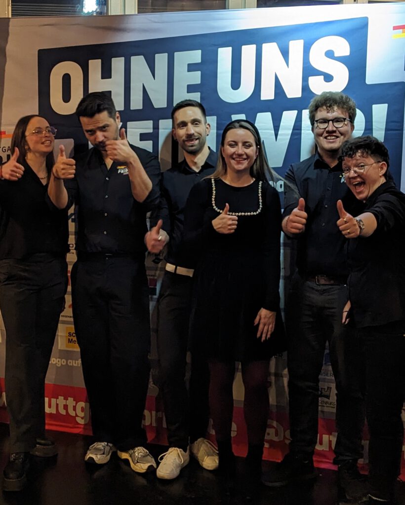 Wir danken dem Vorstand und allen ehrenamtlichen Akivist:innen der IG CSD Stuttgart für diesen Abend und für alle ihre Aktivitäten für Sichtbarkeit, Sicherheit und demokratische Entschlossenheit!