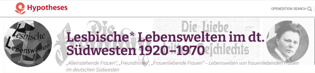 Aus unserem Projekt (sowie aus dem Projekt in Stuttgart) ist ein Blog mit dem Namen „lesbenwelt.hypotheses.org“ enstanden, auf welchem in kurzen Beiträgen unterschiedliche Themen aus den letzten Jahren aufbereitet wurden. Hier kann bei Interesse auch ohne wissenschaftliche Vorkenntnisse gestöbert und sich informiert werden.